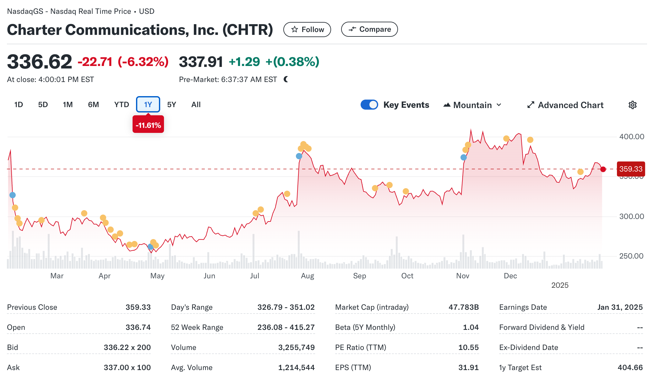 10. 차터 커뮤니케이션스(NASDAQ: CHTR)