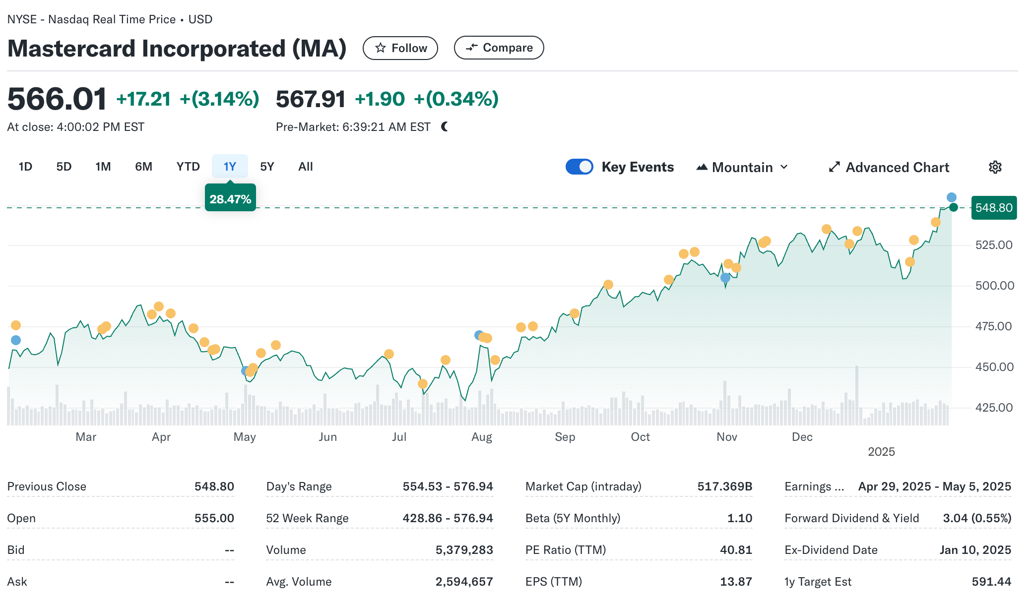 - 비자(V), 마스터카드(MA)와 같은 전자 결제 회사들은 높은 마진과 강력한 네트워크 효과를 기반으로, 지속적인 성장과 높은 수익성을 유지하고 있습니다.