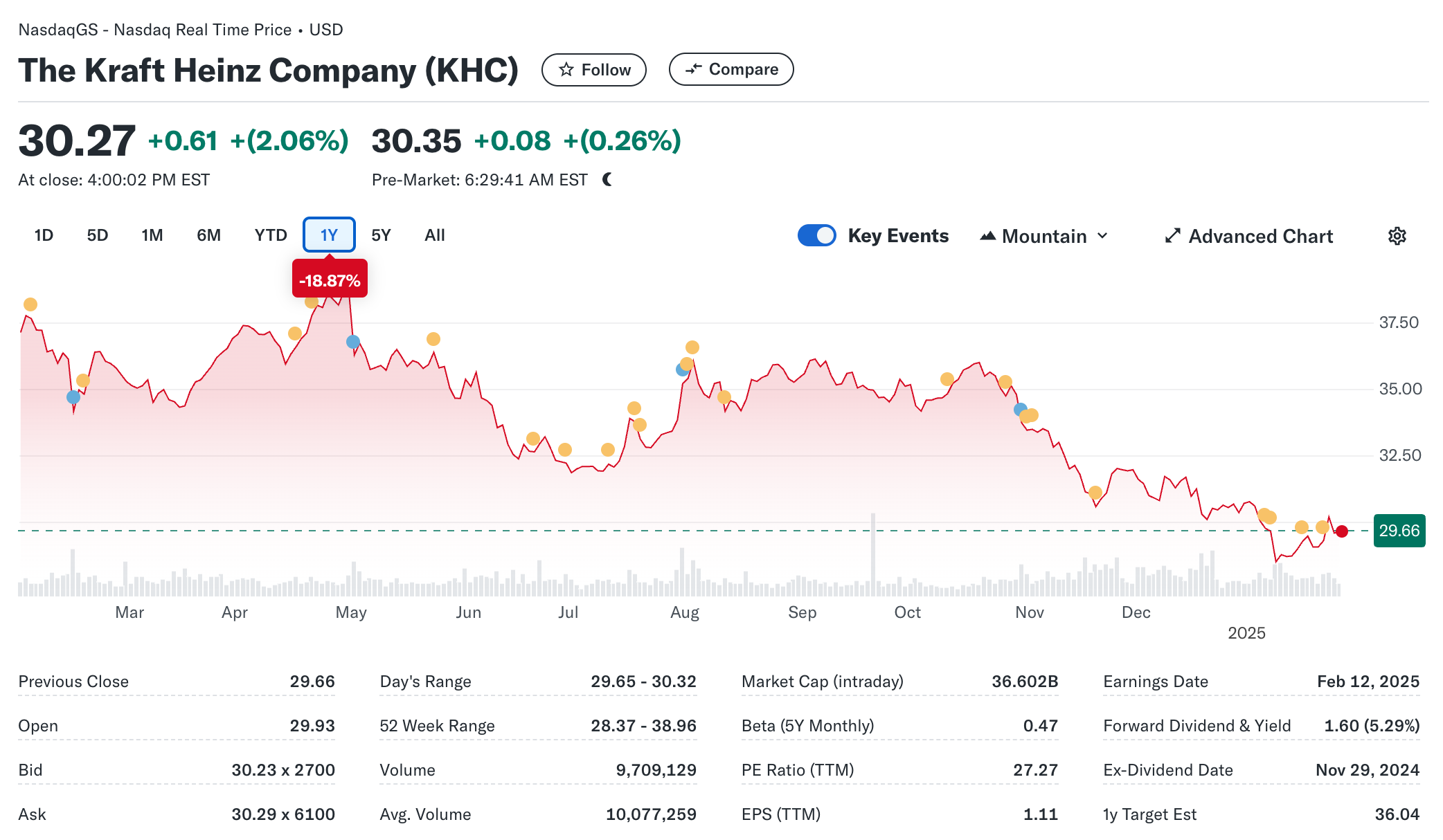 8. 크래프트 하인즈(NASDAQ: KHC)