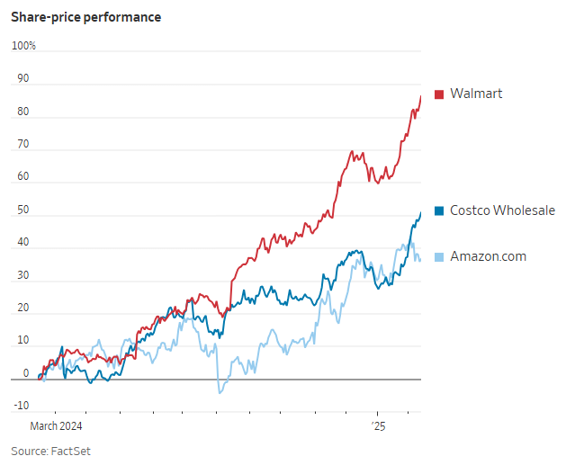 한때 아마존과 코스트코에 밀려 소매 시장에서 다소 뒤처진 듯 보였던 월마트(Walmart)가 다시 한 번 소매업계의 정상을 차지했다. 2024년 주가가 72% 상승한 데 이어, 올해에도 16% 추가 상승하며 투자자들에게 강한 신뢰를 얻고 있다. 온라인 시장에서도 입지를 넓히며 저소득층뿐만 아니라 고소득층 소비자들까지 사로잡고 있다. 그렇다면 월마트의 성공 요인은 무엇이며, 이 기세를 계속 유지할 수 있을까?