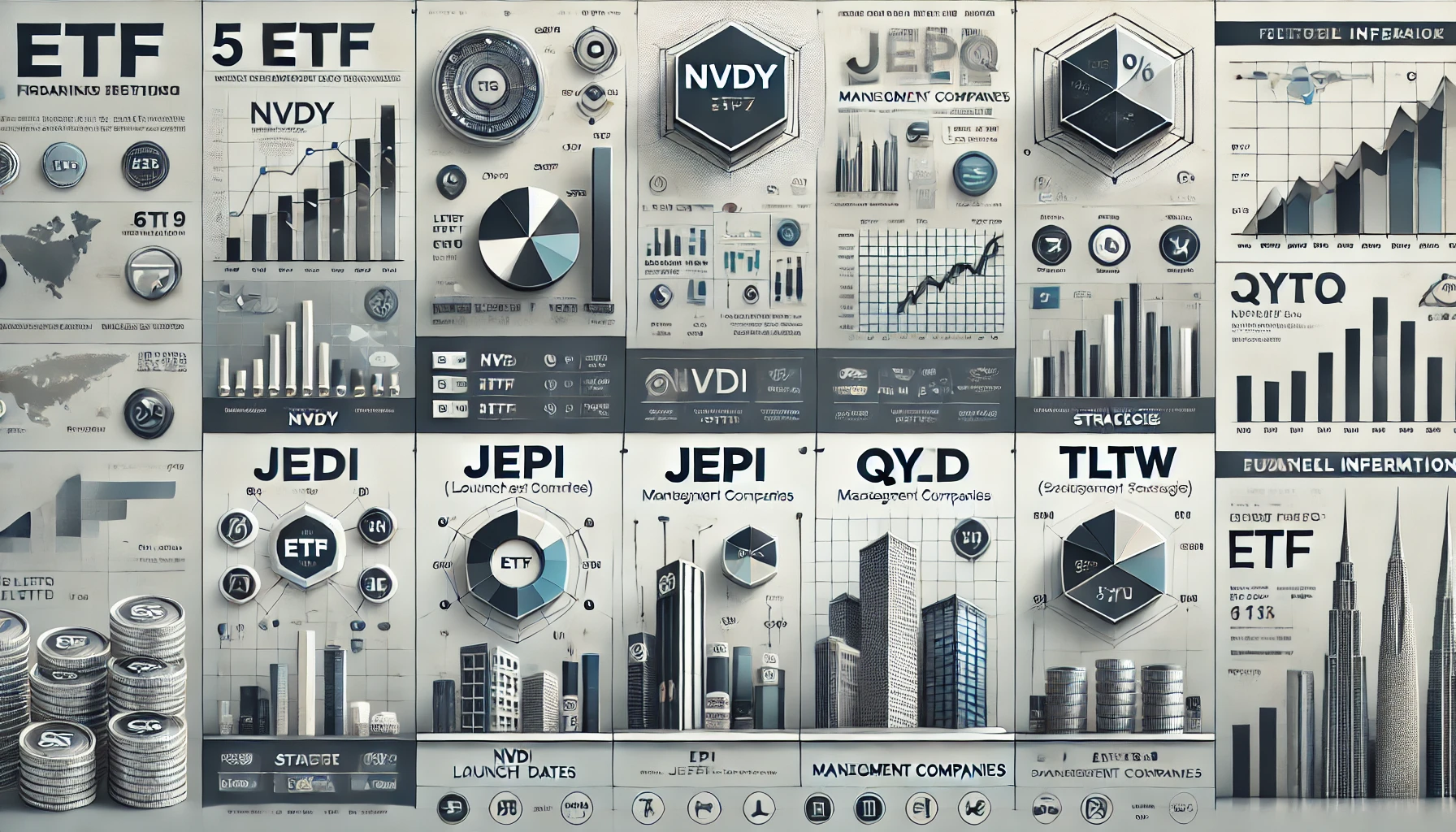 다음은 NVDY, JEPI, JEPQ, QYLD, TLTW 각 종목에 대한 일반적인 정보와 월배당 ETF 투자 시 고려해야 할 장점과 주의사항을 정리한 내용입니다.