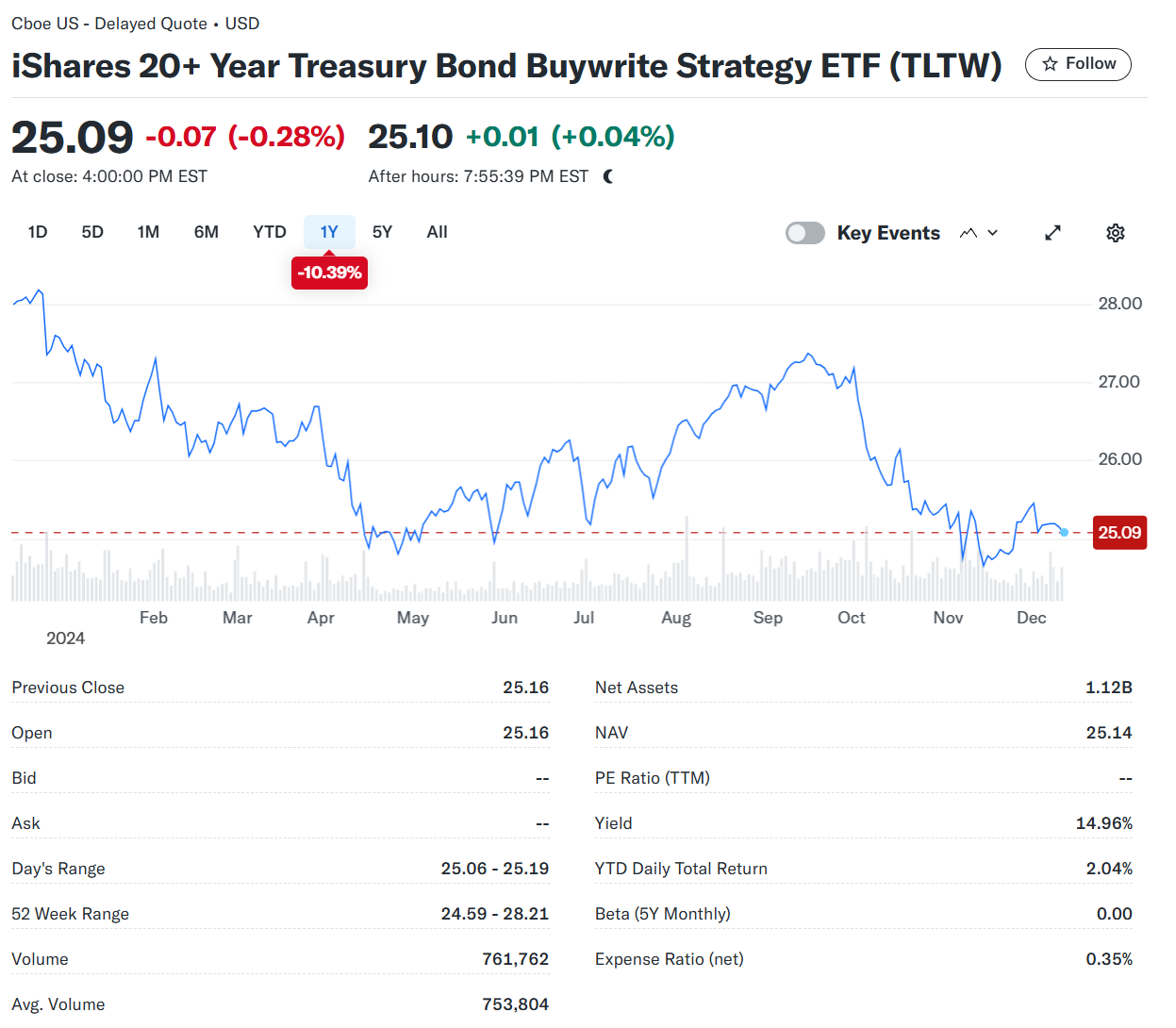 5. TLTW (iShares 20+ Year Treasury Bond BuyWrite Strategy ETF)