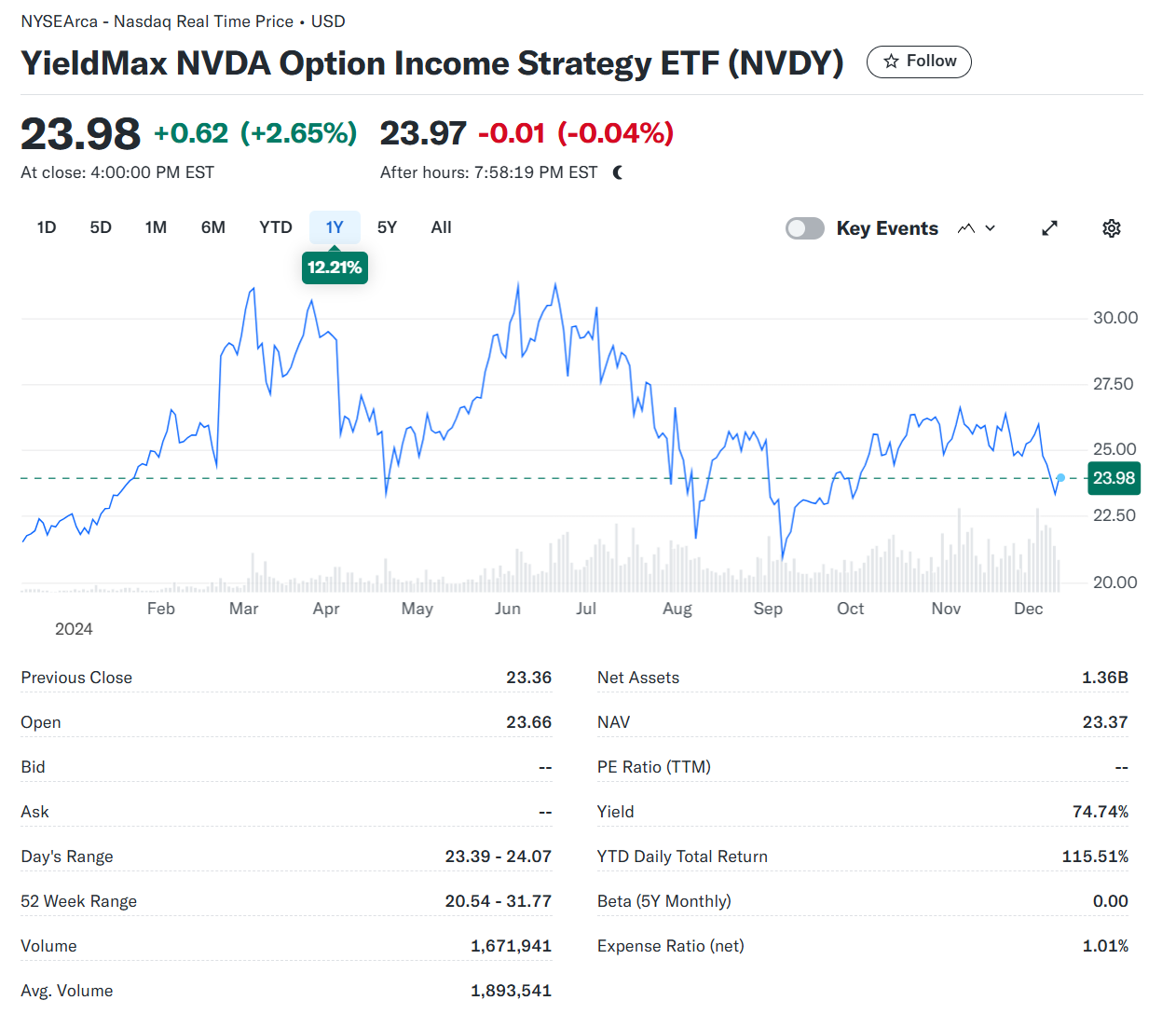 1. NVDY (YieldMax NVIDIA Option Income Strategy ETF)