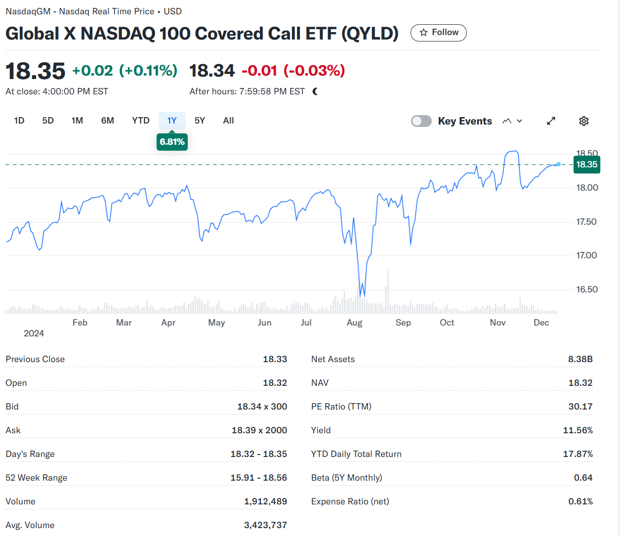 4. QYLD (Global X Nasdaq 100 Covered Call ETF)