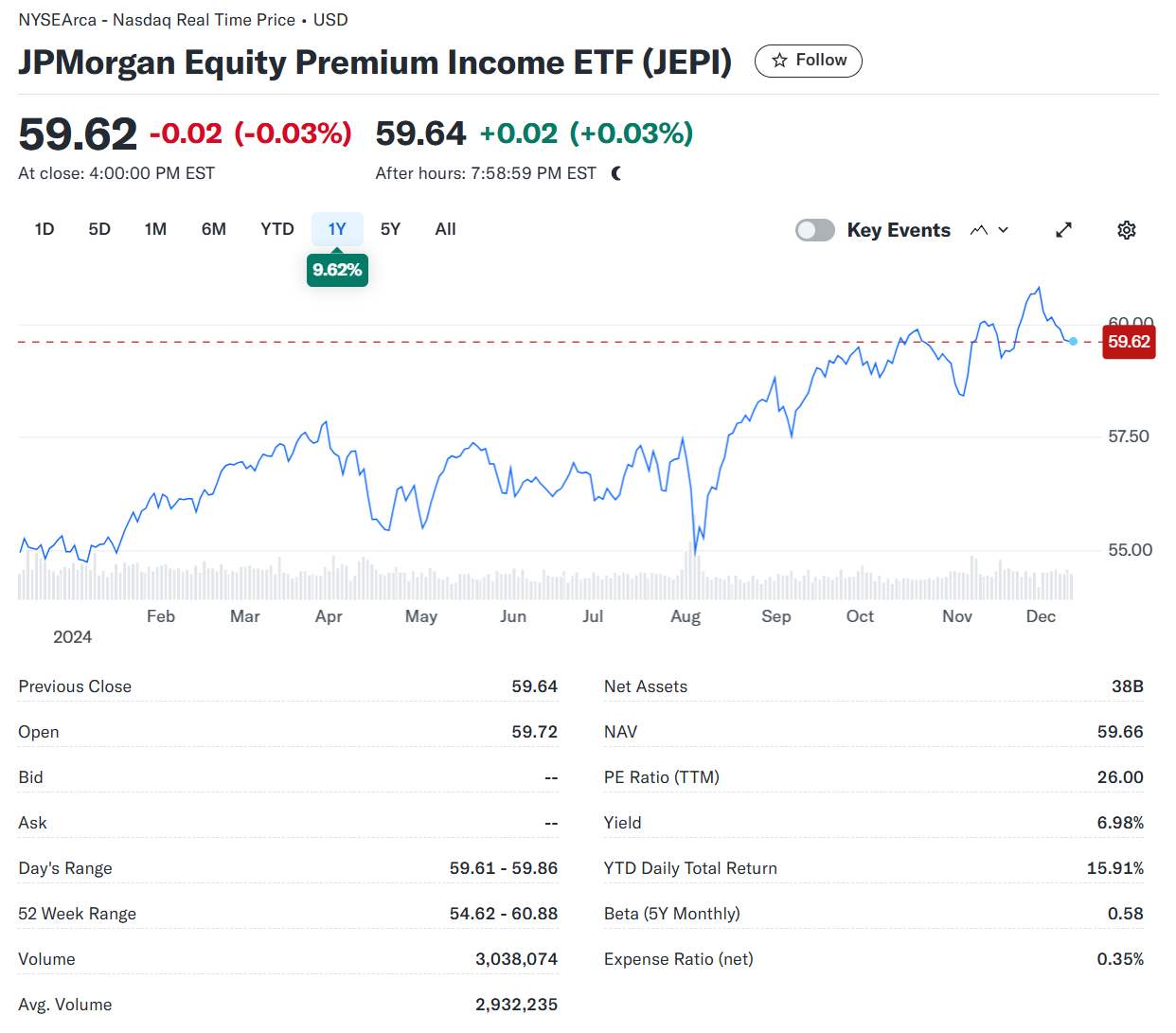2. JEPI (JPMorgan Equity Premium Income ETF)