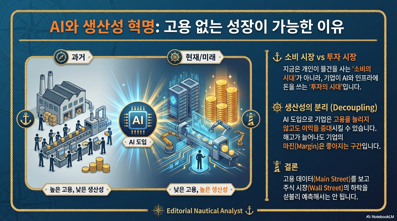 과거의 문법으로는 해고 뉴스가 나오면 소비 위축과 주가 하락을 점쳤습니다. 하지만 지금은 장세의 엔진 자체가 다릅니다. 우리는 지금 집안에 DRAM이나 변압기를 쌓아두고 소비하는 시대가 아니라, **기업들이 AI와 전력망에 거대한 자본을 쏟아붓는 '투자 사이클'**의 한가운데에 있습니다.