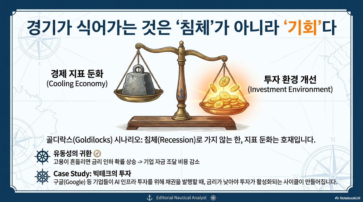 이 국면에서 기업에 가장 중요한 변수는 소비자의 지갑 두께가 아니라 자본 조달 비용, 즉 **'금리'**입니다. 최근 알파벳(Alphabet)이 국채 대비 극히 낮은 가산금리로 영구채에 가까운 장기 채권을 발행한 사례에 주목하십시오. 이는 기업들이 낮은 비용으로 투자 실탄을 확보하고 있음을 증명합니다. 금리 인하 환경은 이러한 투자 사이클을 더 길고 강력하게 연장시키는 '방패' 역할을 할 것입니다.