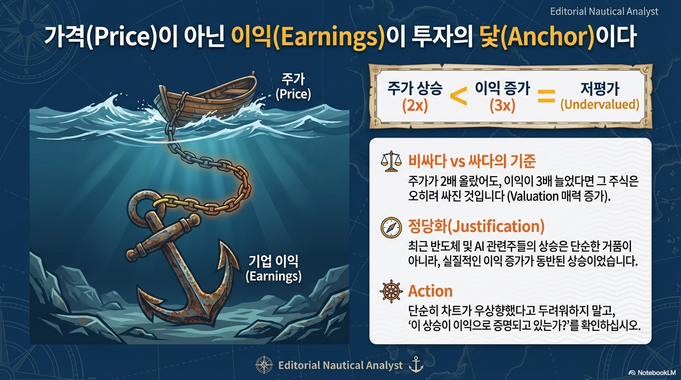 지수라는 숫자의 감옥에서 벗어나십시오. 주가가 올랐다는 사실보다, **'올랐음에도 불구하고 기업의 이익 체력이 이를 정당화하는가'**를 직접 확인하는 밸류에이션의 습관이 당신을 포모(FOMO)로부터 구해줄 것입니다.