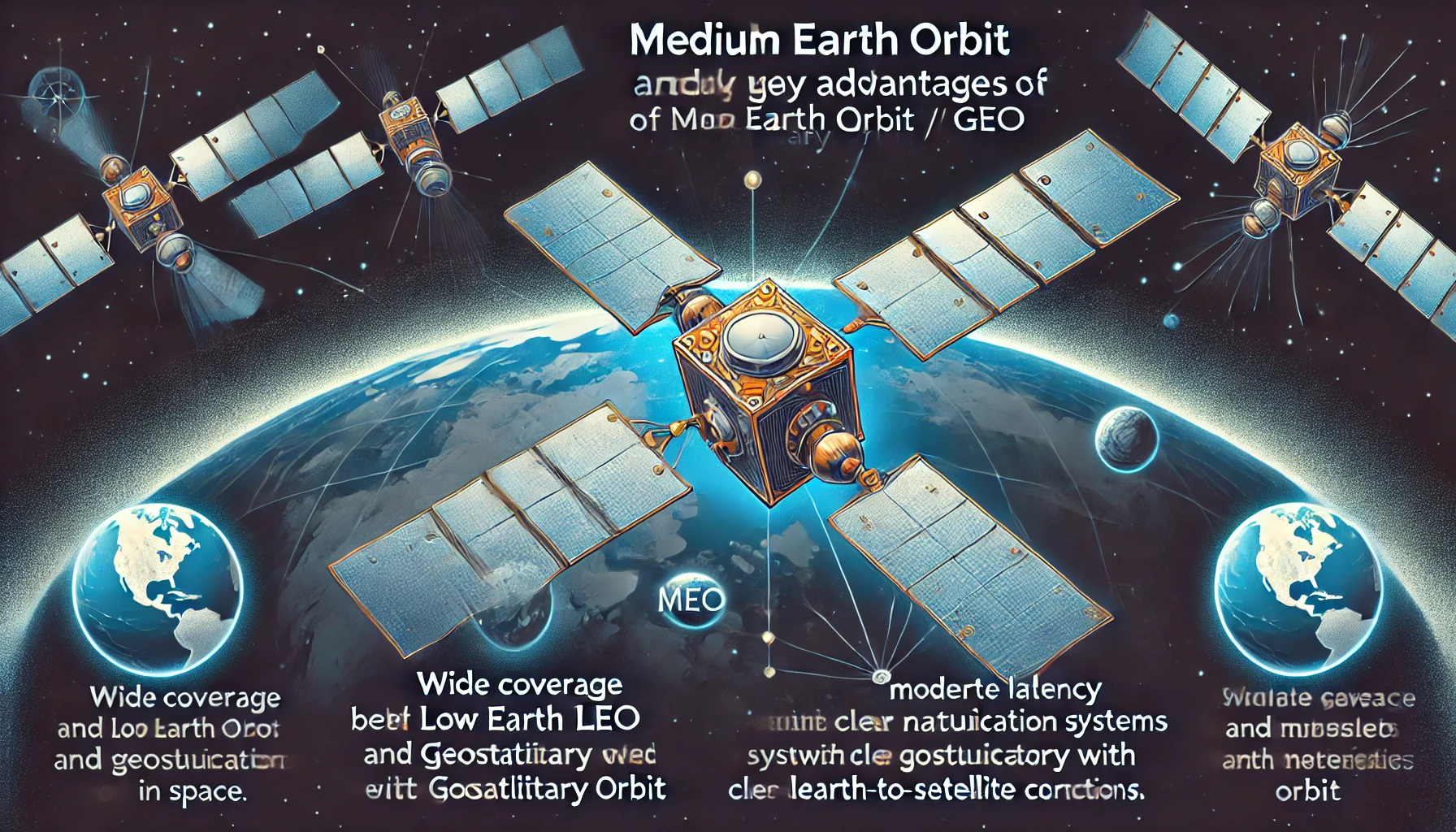 MEO는 지구 표면에서 1,200~22,000km 사이의 중간 고도에 위치하며, 저지구 궤도와 정지 궤도 사이에 있습니다. MEO는 GPS와 같은 내비게이션 시스템을 비롯한 통신 네트워크에 적합한 위치에 있으며, 저궤도와 고궤도의 장점을 일부 결합하고 있습니다.