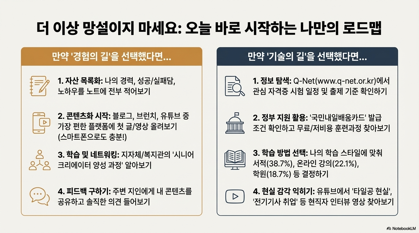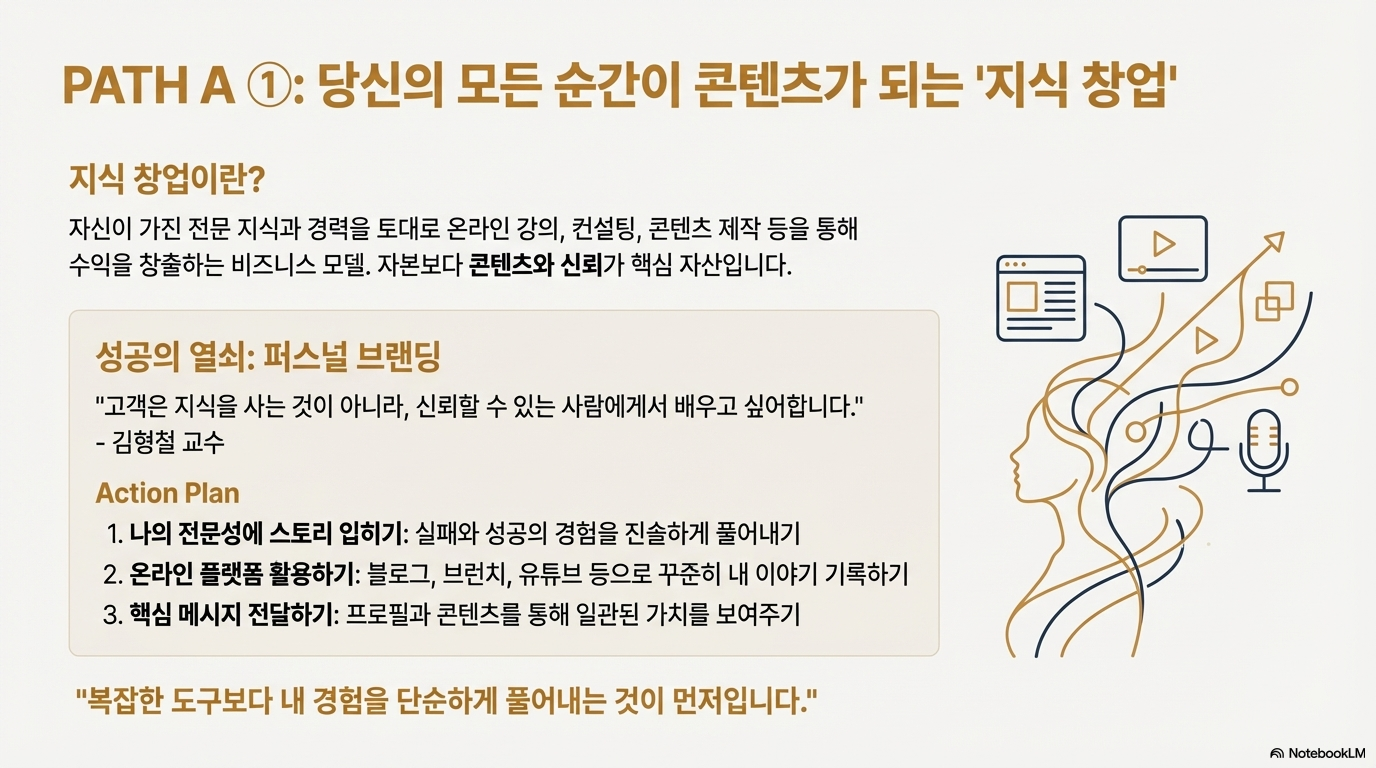• 핵심: 수십 년간 쌓아온 자신의 경험과 지식을 콘텐츠로 만들어 판매하는 길입니다.