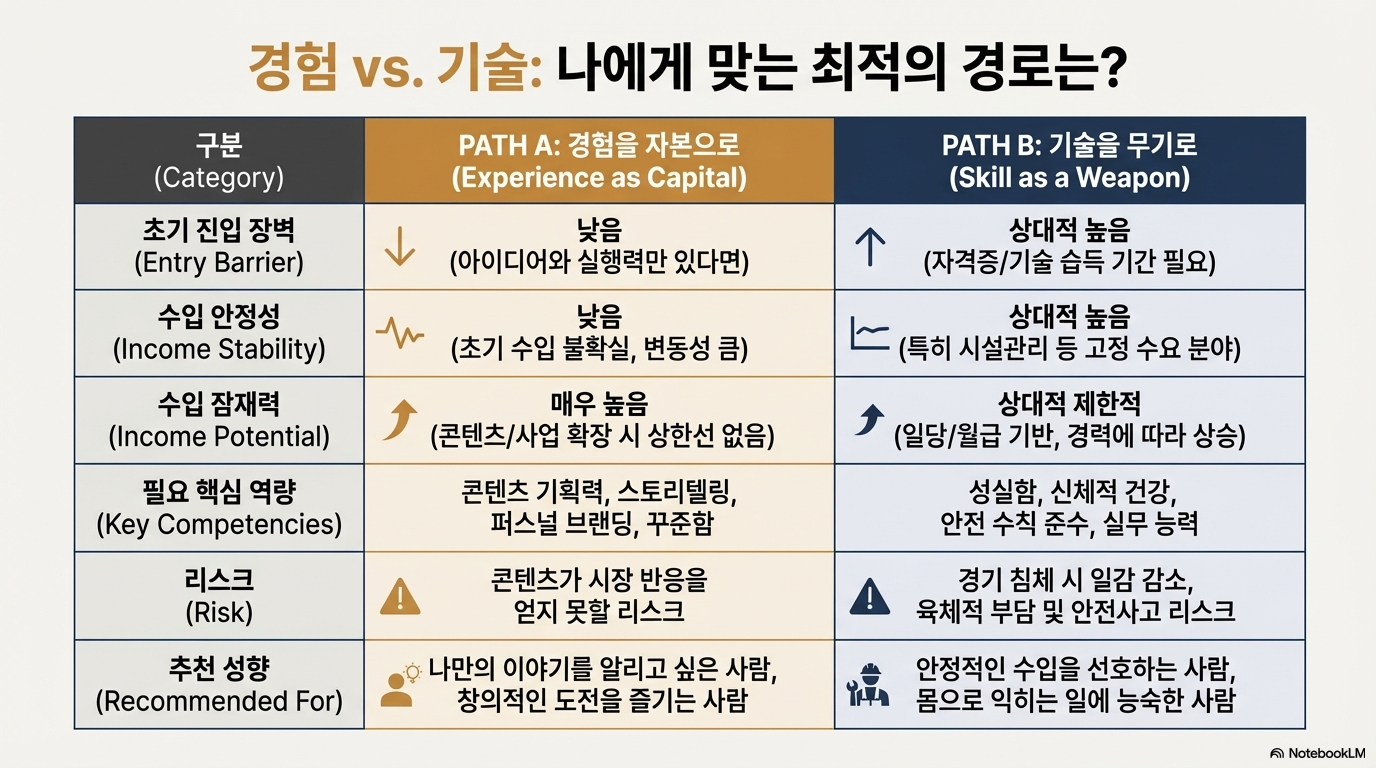 지금까지의 냉정한 현실들을 종합해보면, 은퇴 후 제2의 직업은 크게 두 가지 길로 나뉩니다. 어떤 길이 자신에게 맞는지 신중하게 고민해야 합니다.