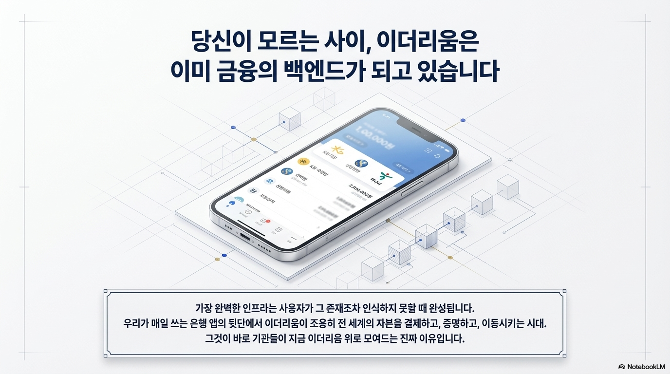 이제 분위기는 반전되고 있습니다. 미국의 클래리티(Clarity) 법안 등을 필두로 제도권화가 급물살을 타면서, 이제 '스타트업의 시대'에서 **'제도권 금융의 시대'**로 넘어가고 있습니다. 규제가 정립되면 일반 대중은 자신이 블록체인을 쓰고 있다는 사실조차 인지하지 못할 정도로 매끄러운 금융 서비스를 경험하게 될 것입니다. 뱅킹 앱 뒷단에서 이더리움 인프라가 조용히 구동되는 시대가 머지않았습니다.