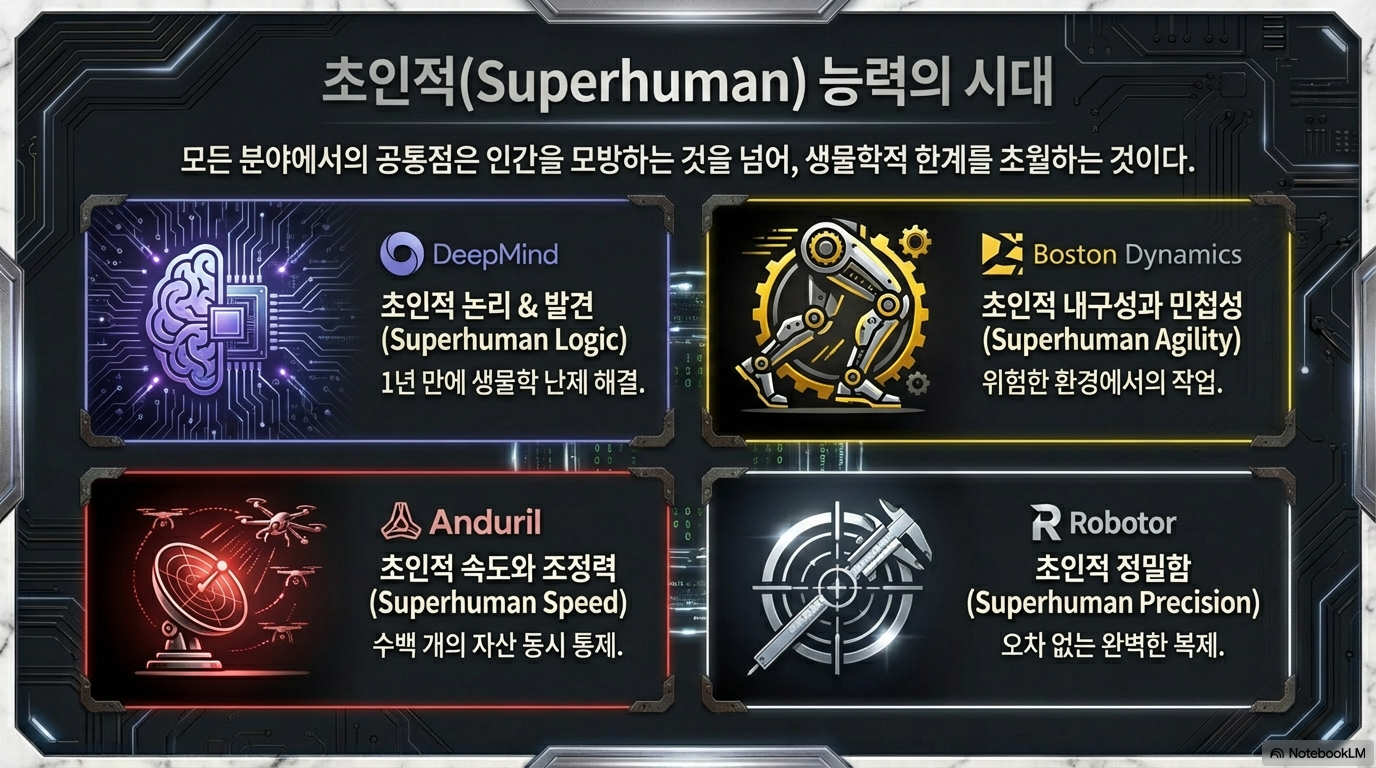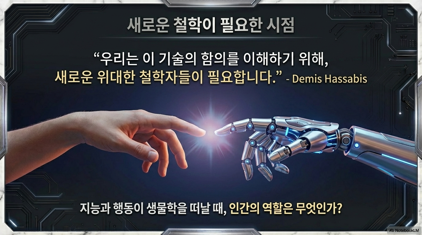 로봇과 AI의 진화는 단순한 생산성 향상을 넘어, 인간의 정의를 근본적으로 다시 묻고 있습니다. 로봇이 인간의 노동 99%를 대신하고, AI가 과학적 발견과 전장의 판단을 주도하는 세상이 머지않았습니다.