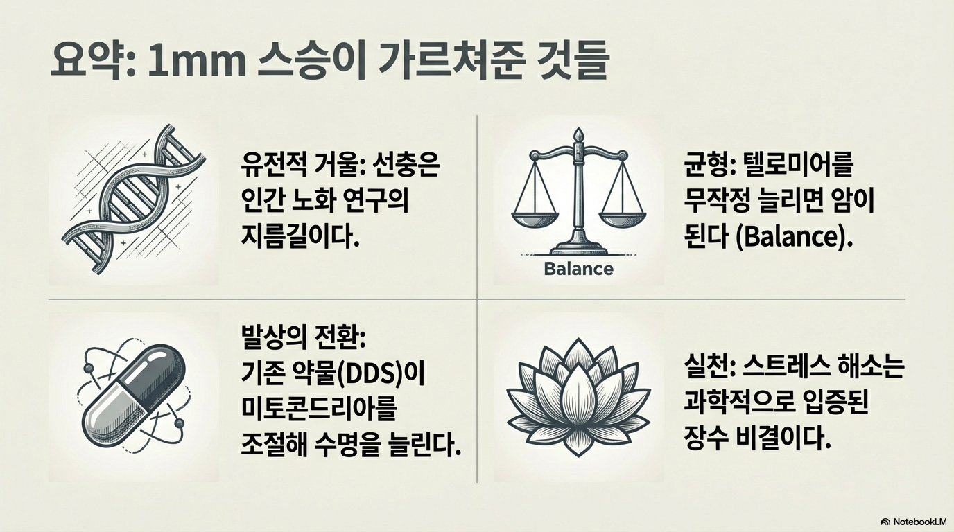 예쁜꼬마선충의 이야기는 우리에게 생명의 근본적인 질문을 던집니다. 1mm 벌레가 장수와 암의 비밀을 풀었다면, 우리 주변의 가장 단순하고 평범한 생명체들 속에는 또 어떤 혁명적인 발견이 우리를 기다리고 있을까요?