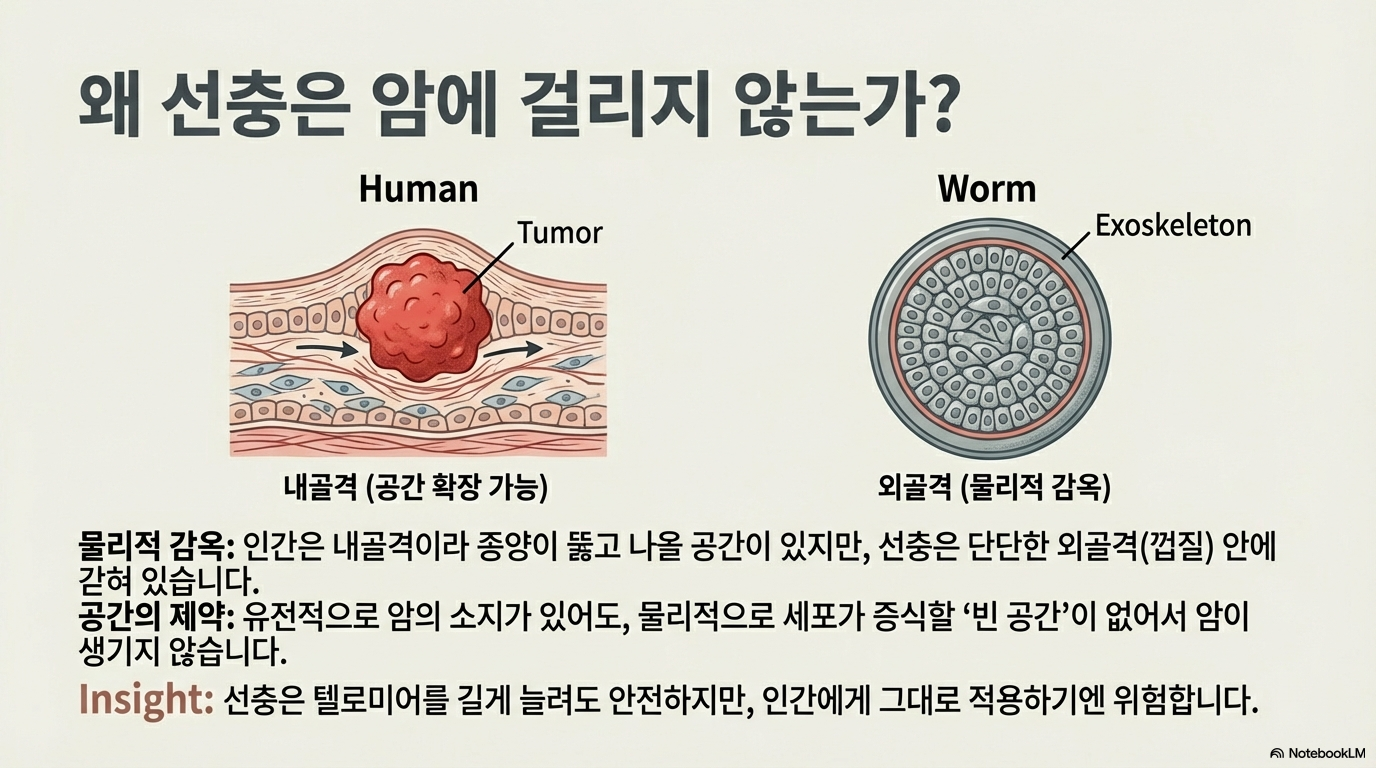 세 번째 발견: 이 벌레는 암에 걸리지 않는다 (이유는 뜻밖에도 물리적이다)