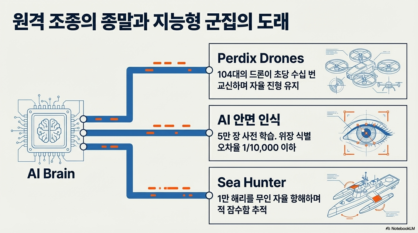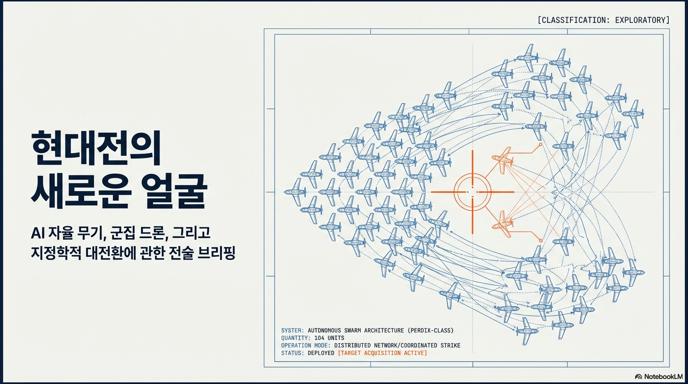 공상과학 영화의 클리셰로 여겨졌던 ‘드론 스웜(Swarm, 군집)’의 습격은 더 이상 먼 미래의 상상이 아니다. 캘리포니아 사막 상공을 뒤덮은 수백 개의 미세한 금속체들이 인간의 조작 없이 유기적인 생명체처럼 대형을 바꾸며 기동하는 순간, 우리는 인류가 수천 년간 고수해온 전통적 전쟁의 종말을 목도하고 있다. 조이스틱을 쥔 인간 병사의 판단 속도는 이미 기계의 ‘집단지성’에 추월당했으며, 인공지능(AI)이 주도하는 이 새로운 전장의 규칙은 우리가 알던 안보의 상식을 근본부터 뒤흔들고 있다.