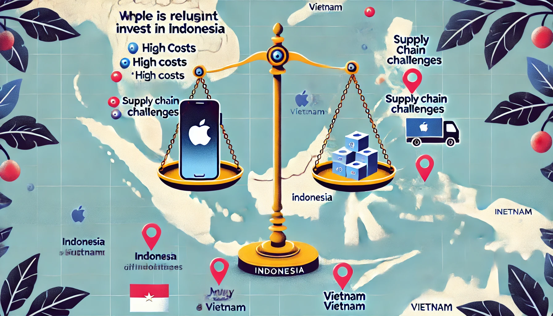 애플이 인도네시아에서 제조 시설을 설립하지 않는 주된 이유는 경제적, 인프라적 환경의 부족과 생산 효율성의 어려움 때문입니다.