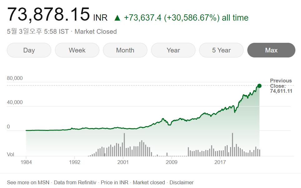 2023년 4월 10일, 센섹스 지수는 사상 처음으로 75,000 포인트를 넘어서며 75,038 포인트로 마감했습니다. 이러한 상승세는 인도 내부의 강력한 기업 실적과 글로벌 투자자들의 지속적인 자금 유입에 힘입은 결과입니다. 인도 기업들의 견고한 기초 체력과 수익성은 특히 외국 투자자들에게 매력적인 투자처로 인식되고 있습니다.