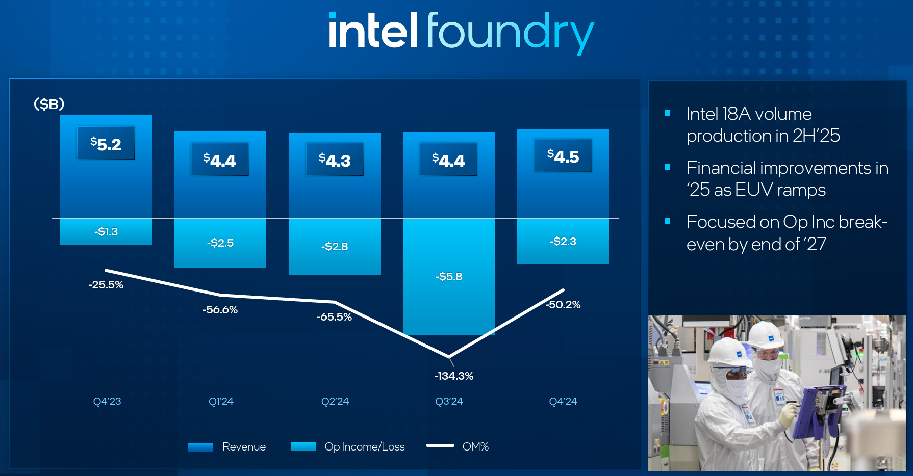인텔의 파운드리 사업은 여전히 불확실성이 크다. 현재 시장에서는 TSMC가 인텔의 일부 파운드리 시설을 인수할 가능성이 제기되고 있으며, Broadcom이 인텔의 칩 설계 및 마케팅 부문 인수를 고려 중이라는 보도도 나오고 있다.