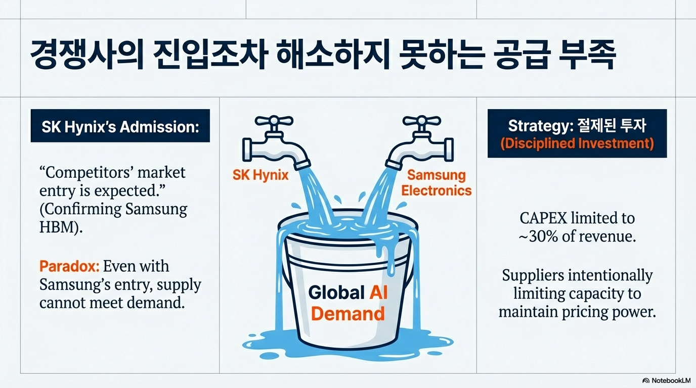 머스크는 삼성전자, TSMC, 마이크론 등 주요 공급업체들이 생산량을 최대로 늘리는 최상의 시나리오를 가정해도, AI 연산에 필요한 메모리는 여전히 부족할 것이라고 단언했습니다. 이는 반도체 시장을 단기적인 사이클 산업으로 바라보던 기존의 통념을 완전히 뒤엎는 발언입니다. 수요의 최전선에 있는 핵심 인물이 직접 공급 부족의 장기화를 경고했다는 사실은, 이 시장의 성장 동력이 우리가 생각하는 것보다 훨씬 더 길고 강력할 수 있음을 시사합니다.