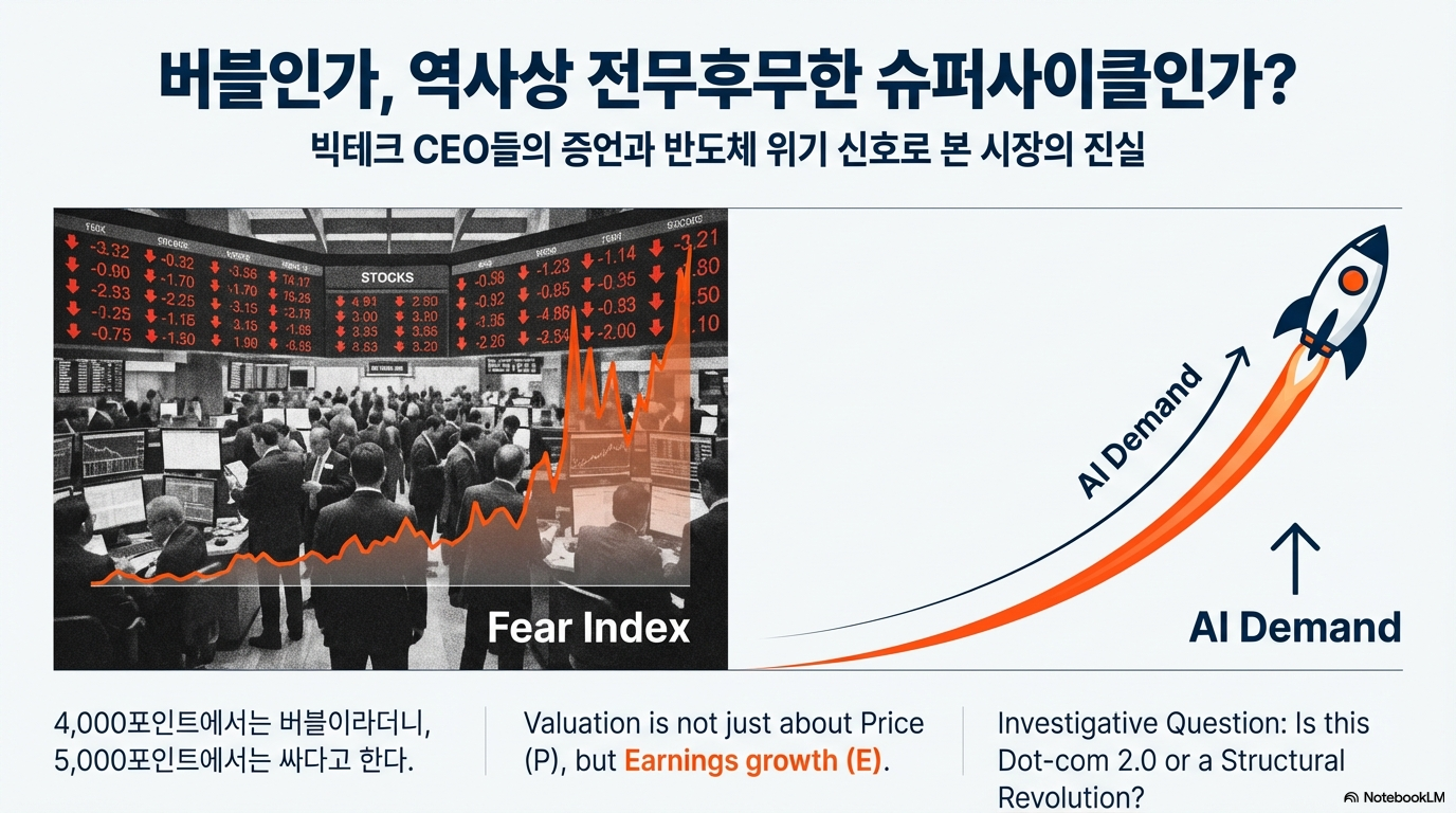 불과 몇 달 전, 시장에서는 '버블' 논란이 거셌습니다. 하지만 이선엽 대표의 관점에서 이는 시장의 근본적인 변화를 읽지 못한 오판이었습니다. 아이러니하게도, 당시 버블을 외쳤던 이들은 지수가 더 오르자 '아직 저평가'라는 말을 하기 시작했습니다.