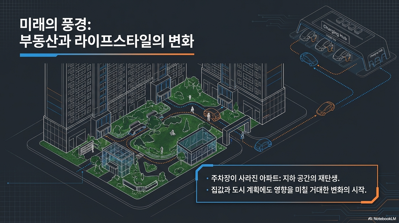특히 자율주행이 보편화되면 지하 주차장은 더 이상 죽은 공간이 아닙니다. 내가 잠든 사이 차가 스스로 나가 택배를 받아오고, 충전과 세차까지 마치고 돌아오는 **'액티브 스마트 허브'**로 진화할 것입니다. 이러한 공간의 가치 변화에 주목하는 것이 미래 투자의 핵심입니다.