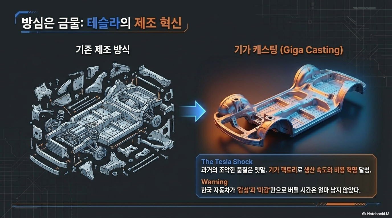 IT 기업들이 지능(Software)을 장악하며 기세등등하지만, 전통 제조사에게는 **'피지컬(제조 능력)'**이라는 반격의 카드가 있습니다. 아무리 뛰어난 지능을 가진 AI라도 이를 구현할 안전하고 정교한 '육체'가 없다면 무용지물이기 때문입니다.