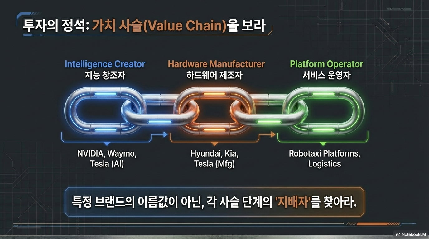 자율주행 시대를 통찰하는 투자자라면 단순히 '어떤 차가 많이 팔릴까'를 넘어 전체 밸류체인을 입체적으로 읽어야 합니다.