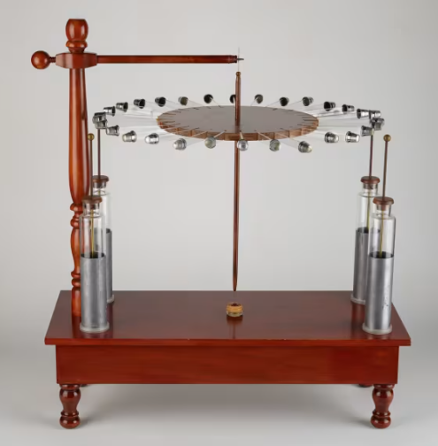 프랭클린의 초기 모델에서, 금속으로 만든 바늘이나 장식물이 전하를 띠고 축을 따라 움직이며 모터를 회전시켰습니다. 이 과정에서, 양전하를 띤 물체는 음전하 쪽으로 끌리고, 반대로 음전하를 띤 물체는 양전하 쪽으로 끌리는 방식으로 축의 회전이 발생하게 됩니다.