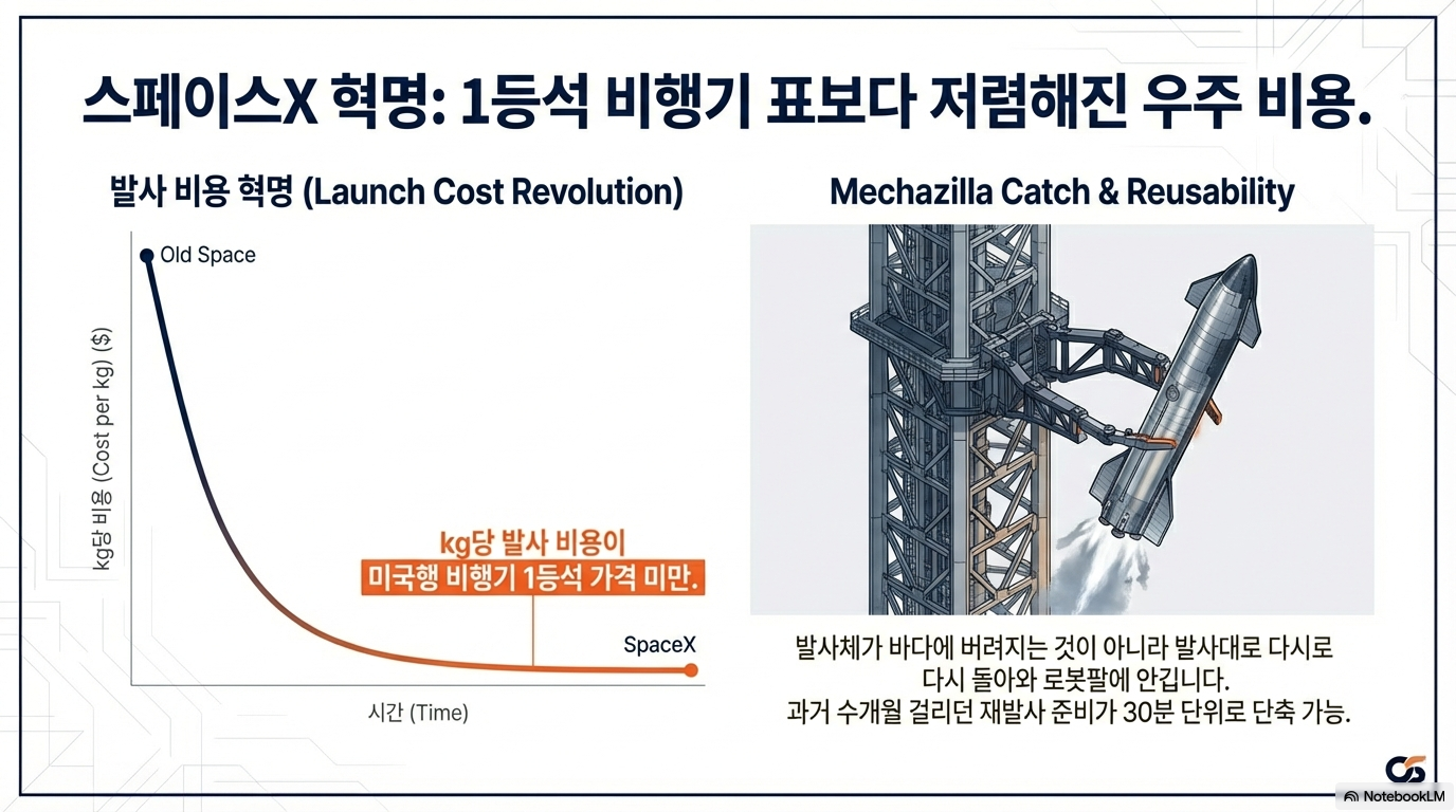 우주 전쟁의 실현을 막았던 가장 큰 벽은 '천문학적인 발사 비용'이었습니다. 하지만 스페이스X의 등장은 이 경제적 논리를 완전히 뒤집었습니다.