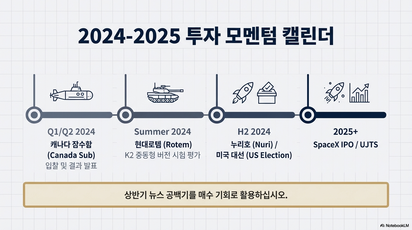 • 특수선 밸류체인의 재평가: 수주 성공 시 한화오션과 HD현대중공업 등 특수선 부문의 매출이 급증하며, 조선업 전반과 부품사들로 막대한 낙수 효과가 이어질 전망입니다. 이르면 5~6월, 늦어도 하반기 중 가시적인 결과가 기대됩니다.