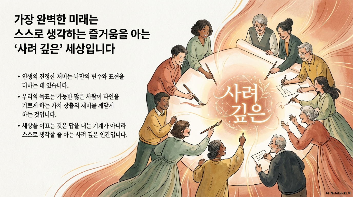 AI가 모든 정답을 알려주는 세상에서, 당신은 타인에게 기쁨을 주는 당신만의 '질문'을 던질 준비가 되었나요? 여러분의 사려 깊은 사고와 타인을 향한 따뜻한 의도가 곧 여러분의 유일무이한 미래가 될 것입니다.