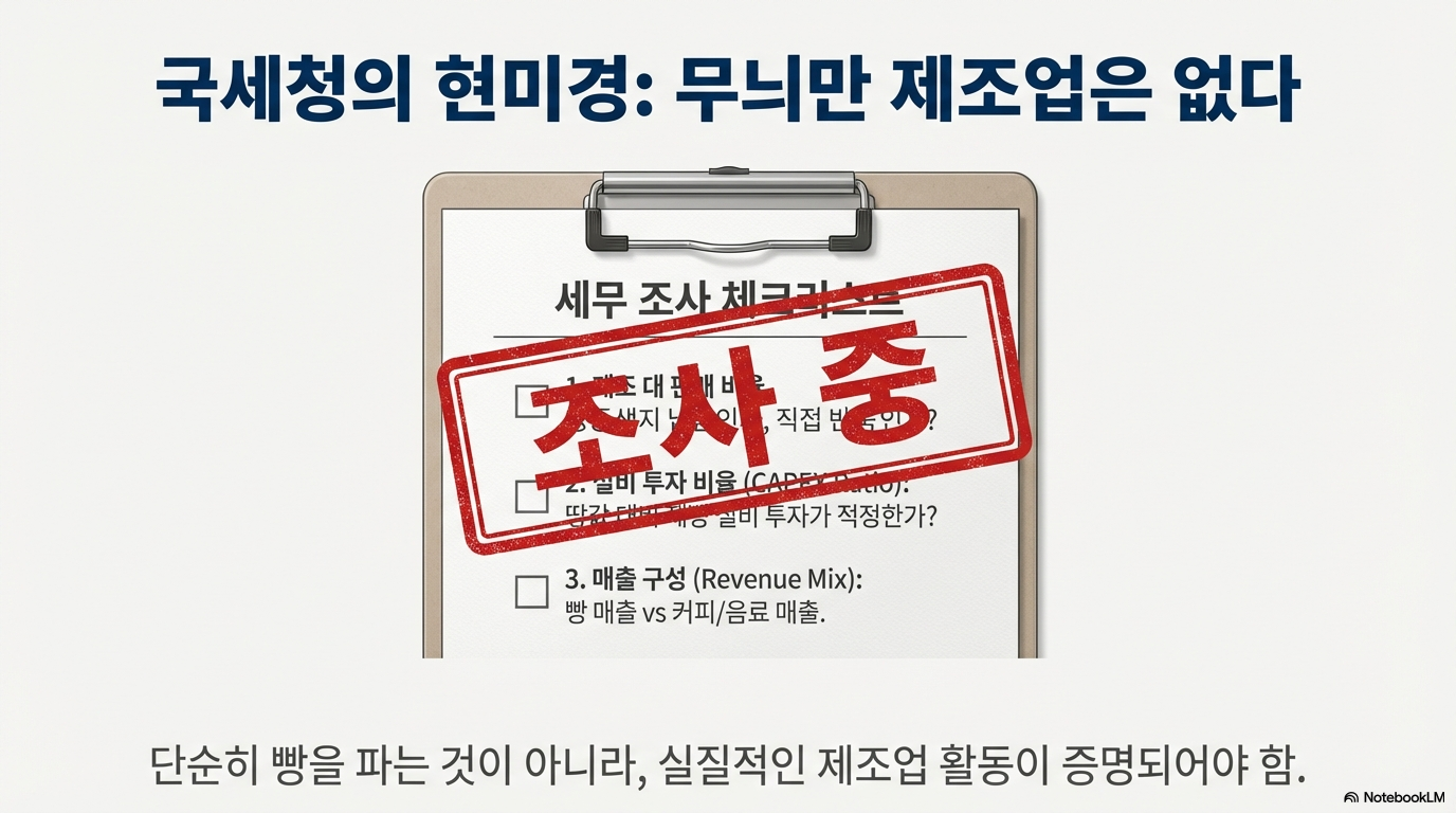 비밀은 '가업 상속 공제' 제도에 있습니다. 본래 중소기업의 승계를 돕기 위한 좋은 취지의 이 제도는 공제 한도가 최대 600억 원까지 늘어나면서, 일부 부유층에게는 세금 없는 부의 대물림 통로로 악용되기 시작했습니다. 핵심은 '빵을 직접 제조'하는 행위를 통해 이 사업을 단순 서비스업이 아닌 '제조업'이나 '음식점업'으로 인정받는 것입니다. 바로 이 분류가 수백억 원의 상속세를 면제받는 마법의 열쇠가 됩니다.