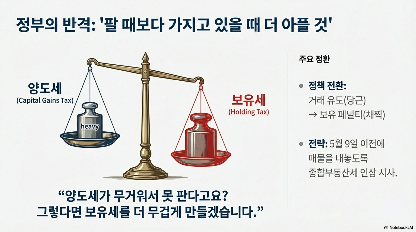 하지만 이번 정부는 다릅니다. 매물 잠김에 대응하기 위해 "보유세를 인상할 수도 있다"는 초강력 압박 카드까지 시사하고 있습니다. 특히 정부는 이 조치를 '새로운 세금'이 아닌, 그간의 비정상적인 유예를 끝내는 '정상화'라고 명명하며 이번 정책이 단순한 으름장이 아님을 분명히 하고 있습니다. 이는 수십 년간 이어져 온 '부동산 불패'라는 시장의 오랜 믿음에 정부가 자신의 신뢰도를 걸고 벌이는 거대한 시험대와 같습니다.