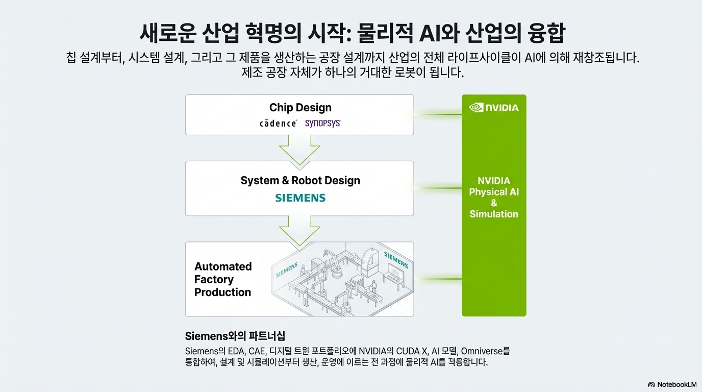 이 글에서는 젠슨 황의 키노트에서 가장 핵심적인 5가지 통찰을 뽑아 누구나 이해하기 쉽게 정리했습니다. 단순한 기술 트렌드를 넘어, 우리 산업과 일상을 재정의할 거대한 변화의 물결을 미리 만나보시죠.