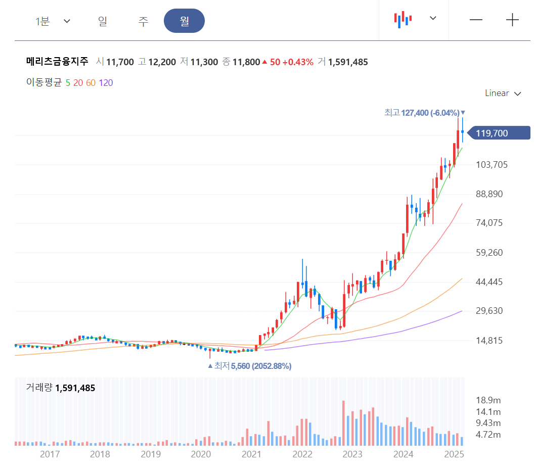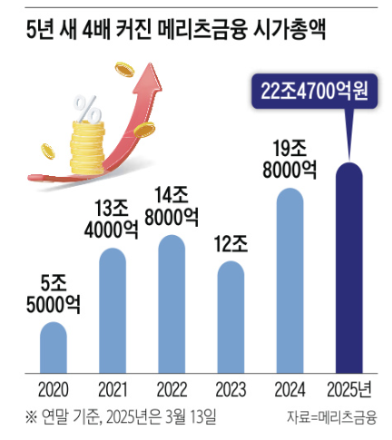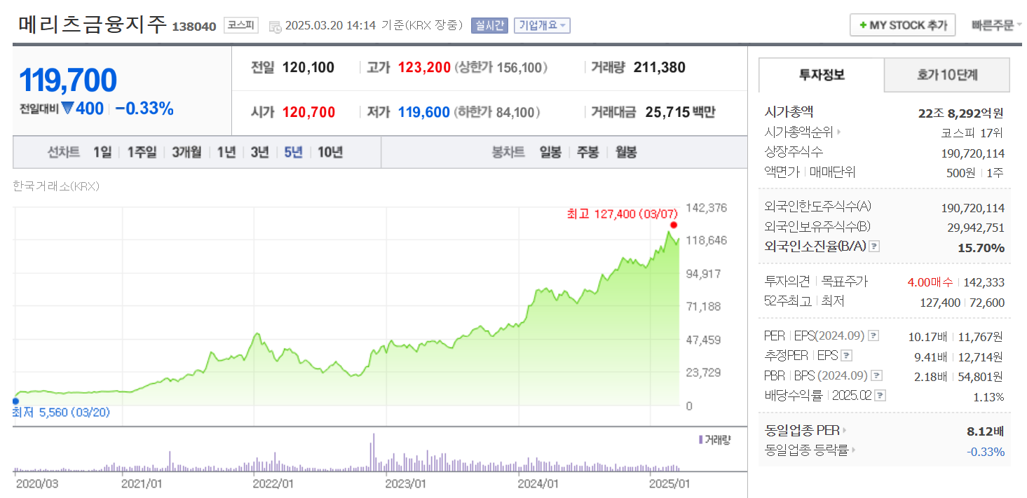 2. 메리츠금융의 주가 상승: 5년 새 4배 성장