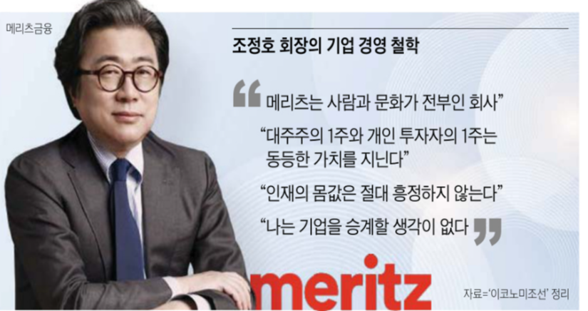 메리츠금융그룹은 과거부터 공격적인 투자 전략과 혁신적인 금융 서비스로 성장해왔습니다. 하지만 한국의 전통적인 금융권에서는 여전히 '승계'가 중요한 이슈였습니다. 이런 상황에서 조정호 회장은 **“나는 기업을 승계할 생각이 없다”**고 선언하며, 메리츠금융의 미래를 완전히 시장 중심으로 운영할 것임을 명확히 했습니다.