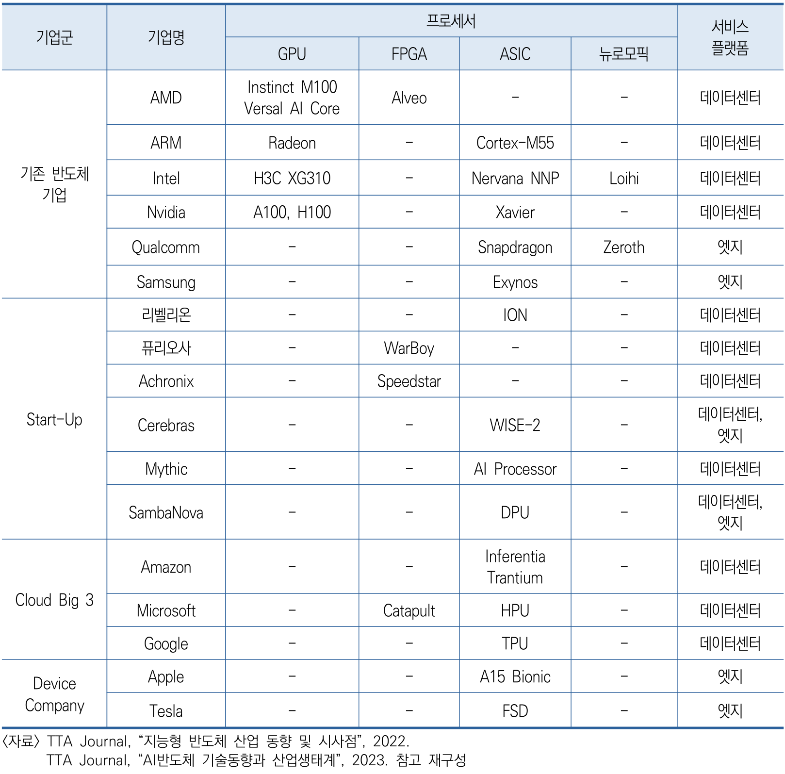 인텔과 AMD 같은 기업은 스타트업 인수를 통해 AI 반도체 시장에 빠르게 적응하고 있으며, 많은 스타트업들이 AI 반도체 개발에 두각을 나타내고 있습니다. 클라우드 서비스 제공업체들은 자체 설계 AI 반도체를 개발하여 클라우드 컴퓨팅 서비스를 제공하고 있으며, 디바이스 기업들도 자체 AI 반도체를 개발하여 제품에 적용하고 있습니다.