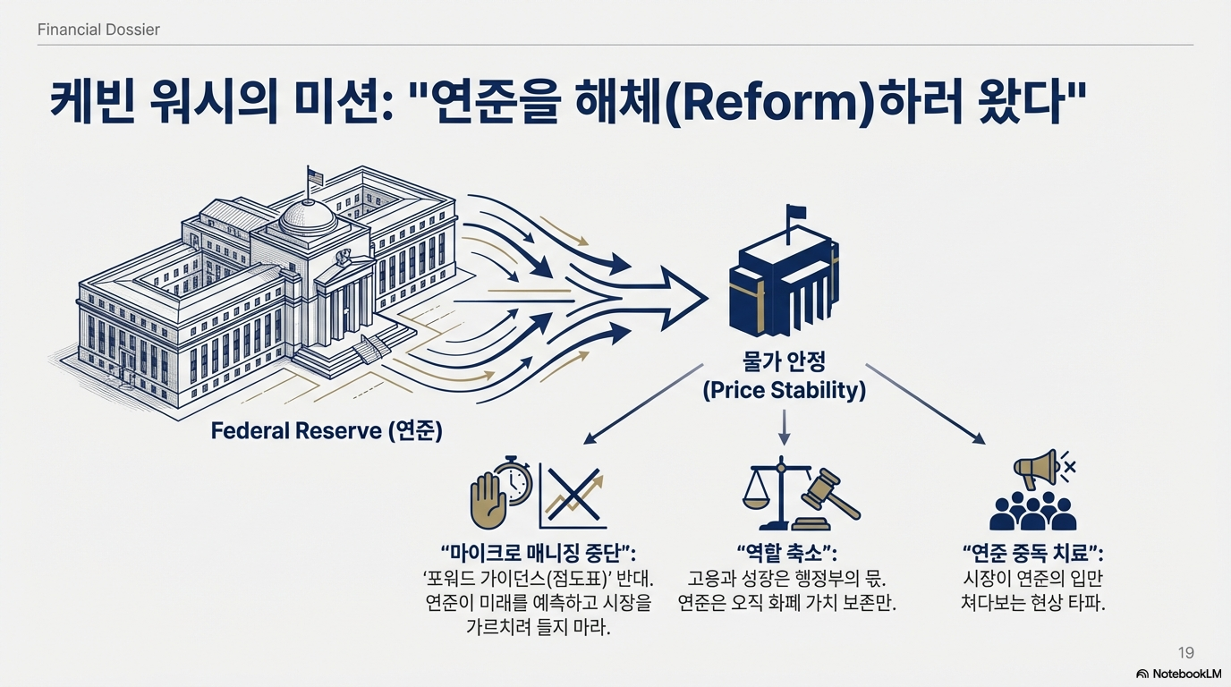 그는 연준이 '경제 기상청' 노릇을 그만두고, 오로지 화폐 가치 보존(물가 안정)이라는 본연의 임무에만 충실해야 한다고 믿는 인물입니다.