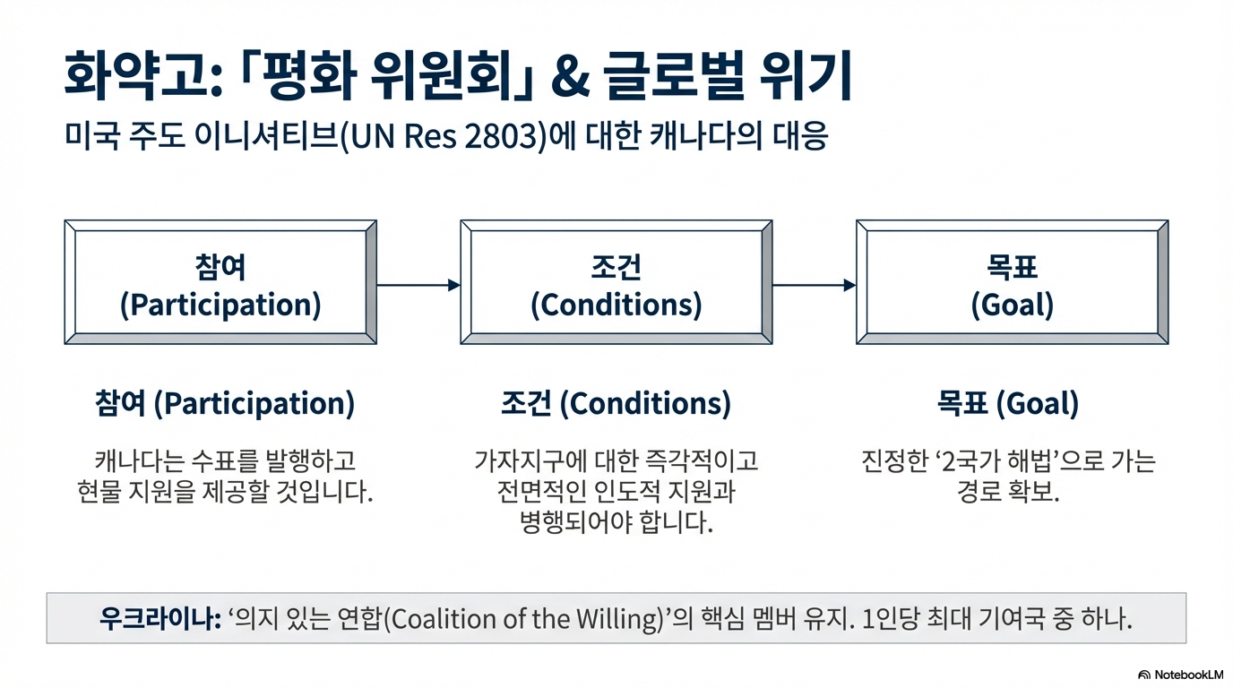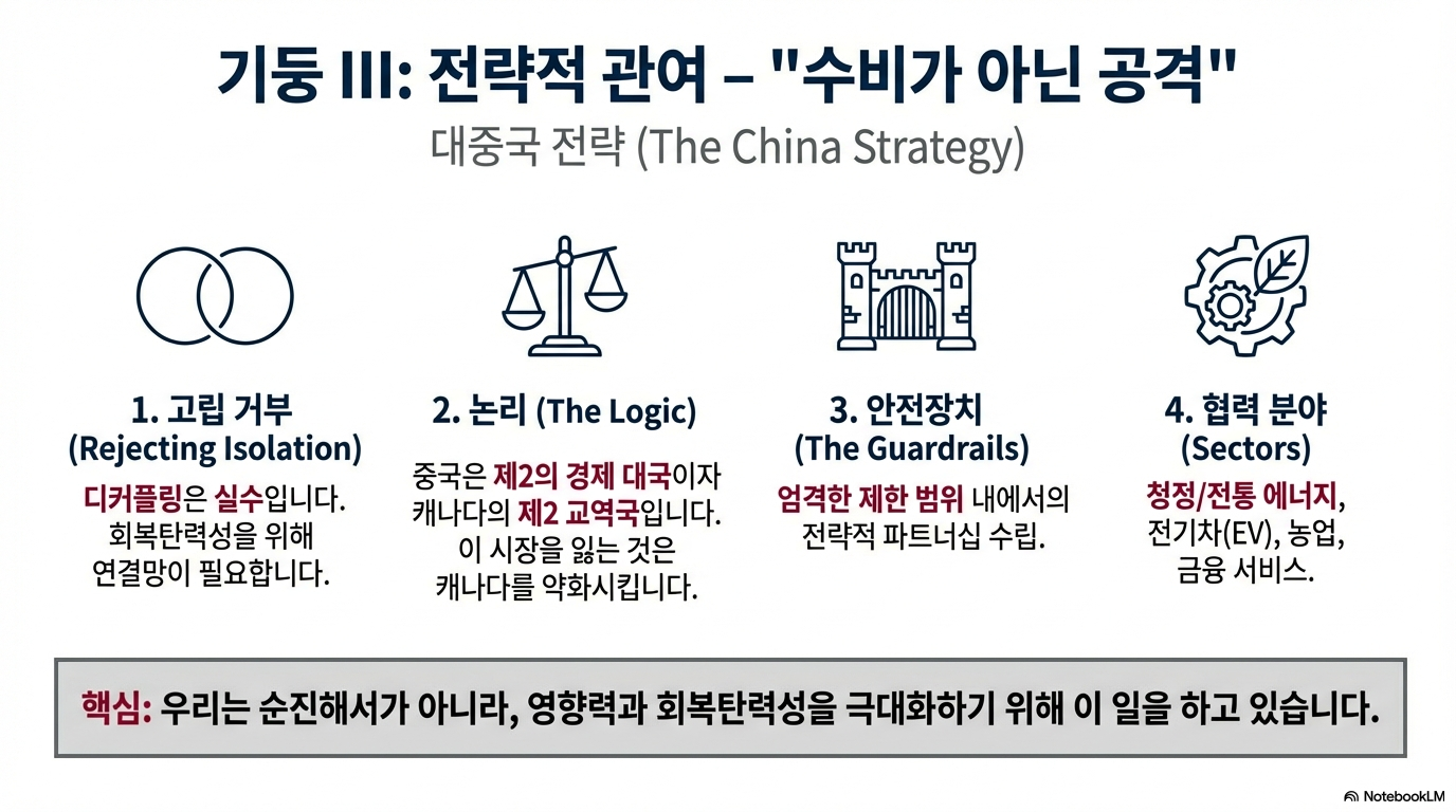 그는 우크라이나 지원 연대, 북극 주권 문제에 대한 덴마크 및 그린란드와의 협력, G7 중심의 핵심 광물 구매자 클럽 형성, 그리고 AI 분야에서 같은 생각을 가진 민주주의 국가들과의 협력 등을 구체적인 사례로 들었습니다. 이는 낡고 비효율적인 다자주의를 고집하는 것이 아니라, 현실 세계에서 실제로 작동하는 연대를 문제별로 구축해 나가는 새로운 외교 방식입니다.