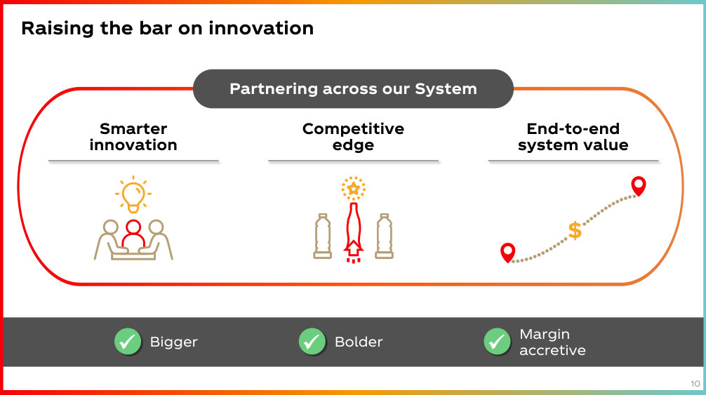 - 2023년 Coca-Cola의 혁신은 연간 총이익 성장의 25%를 차지했으며, 이는 회사의 지속 가능한 성장 전략에서 혁신이 핵심적인 역할을 하고 있음을 보여줍니다.