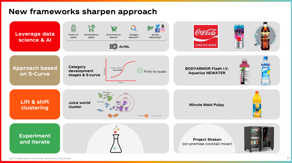 특히, 혁신의 질을 높이고 성공률을 극대화하기 위해 데이터 기반 접근 방식을 활용하고 있습니다. 시장 데이터, 소비자 인사이트, AI 분석을 통해 소비자 행동과 선호도를 파악하여 최적의 시점에 적합한 제품과 서비스를 출시하고 있습니다. 예를 들어, 코카콜라 Creations와 같은 새로운 제품은 특정 세대를 타겟으로 한 마케팅 전략을 통해 브랜드 가치를 높이는 데 성공했습니다.