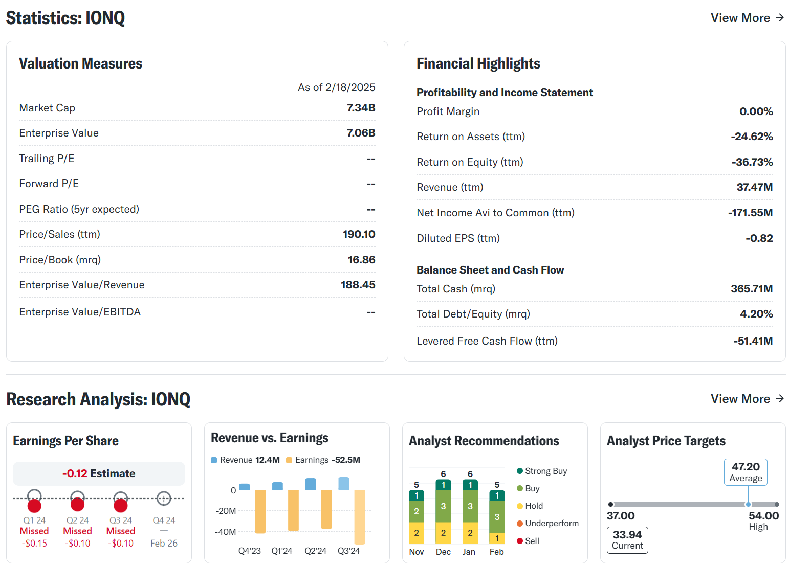 IonQ는 퀀텀 컴퓨팅 시장에서 선도적인 기업 중 하나로, 흥미로운 기술을 보유하고 있는 것은 사실이다. 하지만 현재 시점에서 보면,