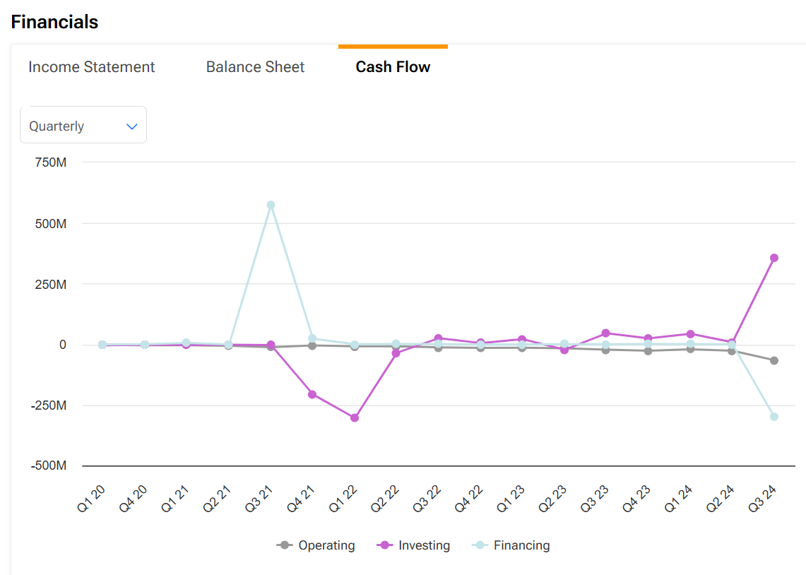 IonQ는 연구 개발(R&D) 및 운영 비용이 급증하면서 순손실이 계속해서 증가하고 있다. 퀀텀 컴퓨팅은 아직 초기 단계에 있는 기술이기 때문에 R&D 투자와 운영 비용이 필수적이지만, 이로 인해 단기적인 수익 창출이 어렵다는 점이 문제다.