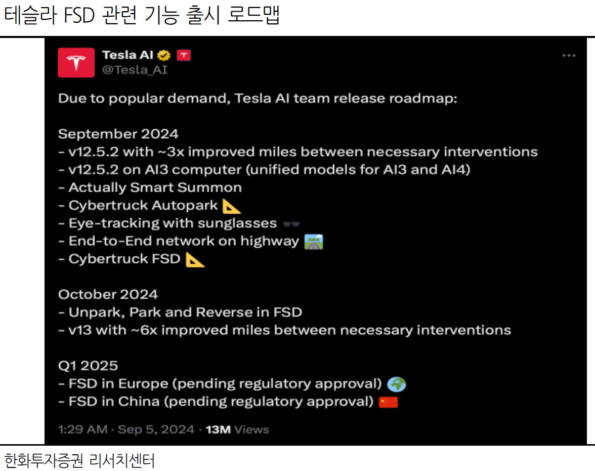 유럽과 중국에서는 2025년 1분기에 FSD가 출시될 예정으로, 테슬라는 앞으로 Ride-hailing 서비스의 글로벌 확장을 본격적으로 추진할 것으로 보입니다.