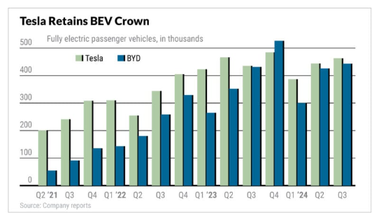 전 세계 전기차 시장에서 테슬라(TSLA)와 비야디(BYD)는 두 거대한 선두 주자로 자리 잡고 있습니다. 이 두 기업은 지속적인 기술 혁신과 글로벌 확장을 통해 전기차 시장에서 경쟁력을 높여가고 있습니다. 2022년 이후 비야디의 판매량이 테슬라를 초과하면서 비야디는 전기차 분야에서 괄목할 만한 성과를 기록했지만, 2024년 들어 테슬라는 다시금 순수 전기차(BEV) 판매 1위 자리를 탈환했습니다. 이번 블로그에서는 테슬라와 비야디의 현재 상황과 향후 전망을 중심으로 이들의 시장 경쟁을 살펴보겠습니다.