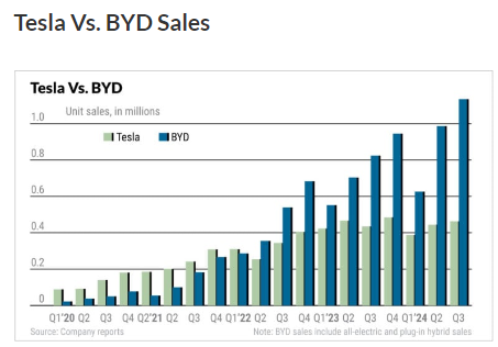비야디의 강력한 성장세는 글로벌 확장과 하이브리드 및 전기차 판매 증가에서 기인합니다. 비야디의 광범위한 모델 라인업과 뛰어난 가격 경쟁력은 다양한 시장에서 큰 성공을 거두고 있으며, 특히 유럽과 아시아 시장에서 높은 수요를 기록하고 있습니다. 이러한 요인들이 비야디의 주가를 지속적으로 상승시키고 있습니다.