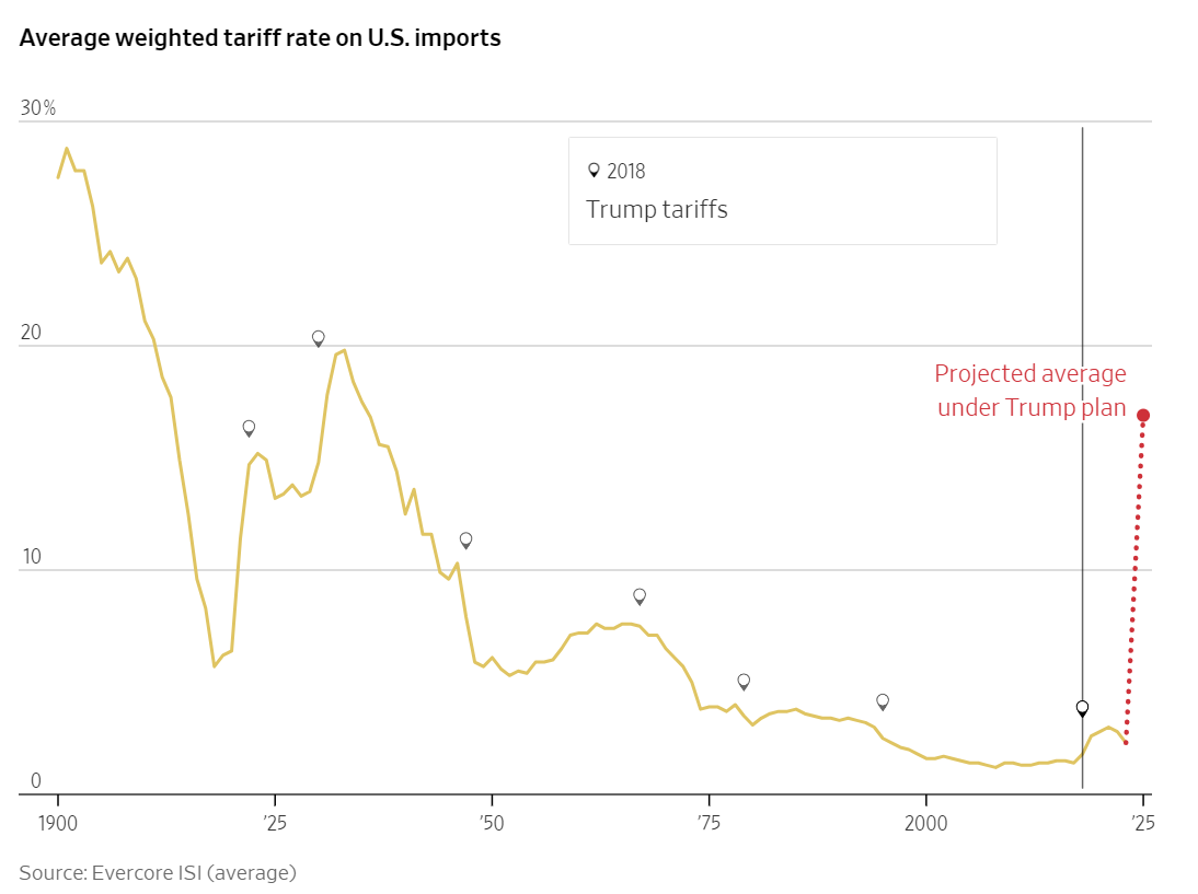 첫 임기 동안 트럼프 대통령은 관세를 활용하여 북미자유무역협정(NAFTA)을 재협상하고, 한미 자유무역협정을 개정하는 등의 성과를 얻었습니다. 하지만 두 번째 임기에서는 전반적인 관세 인상, 특히 중국에 대한 60% 이상의 관세 부과를 고려하고 있습니다. 이로 인해 미국의 평균 관세는 2023년 2.3%에서 17%로 급격히 상승할 가능성이 있으며, 이는 1930년대 대공황 시기의 스무트-홀리 관세법 이후 가장 높은 수준이 될 수 있습니다.
