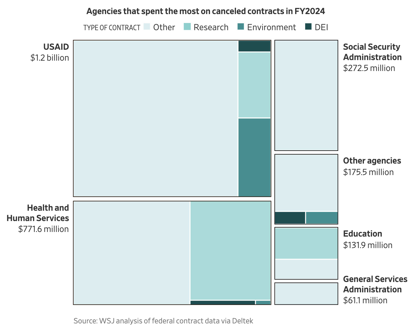 - 특히, DOGE가 강조한 DEI 및 기후 관련 계약 취소는 전체 절감액의 단 2%에 불과하여, 정치적인 홍보 요소가 강조되었을 가능성이 높다는 분석이 나왔습니다.