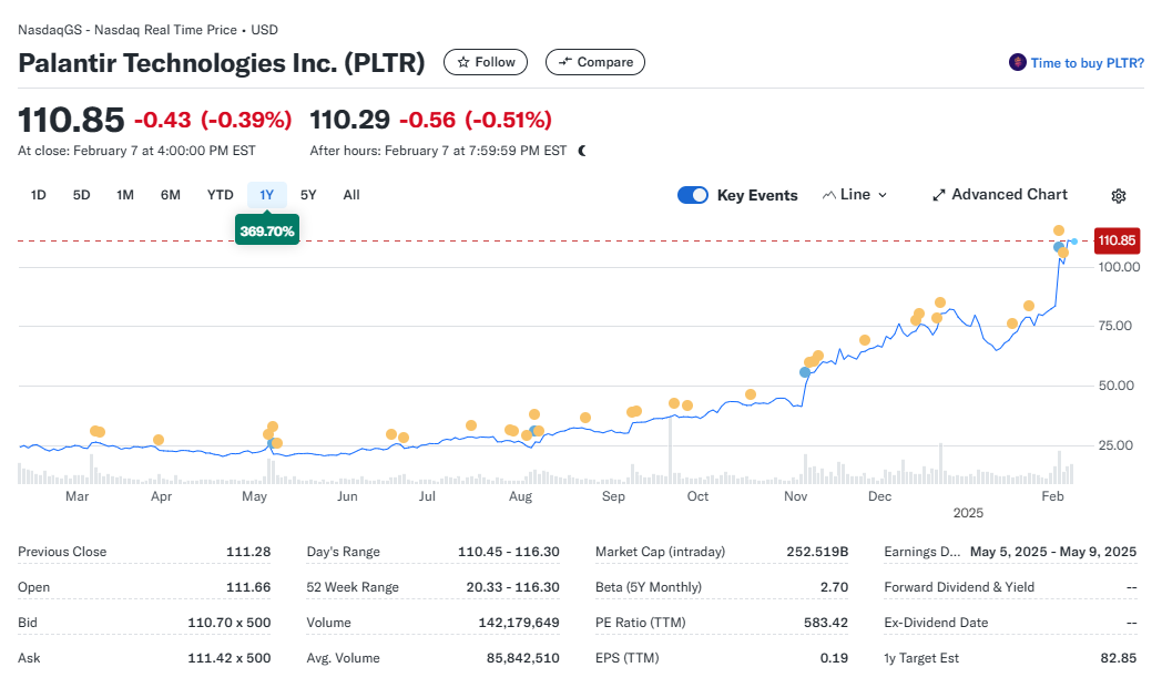 2024년 4분기 실적 발표 이후 팔란티어의 주가는 한 주 만에 39.3% 급등했으며, 한때 41%까지 상승했다.